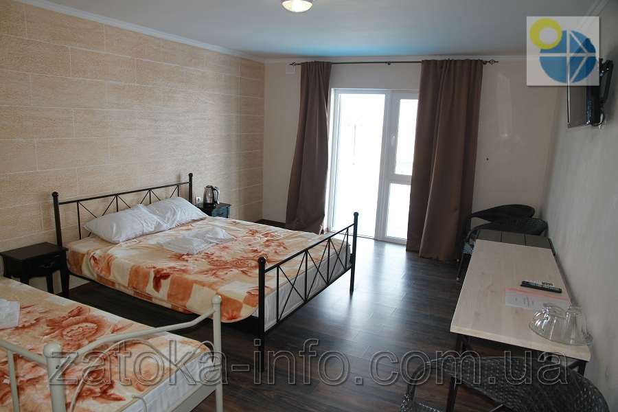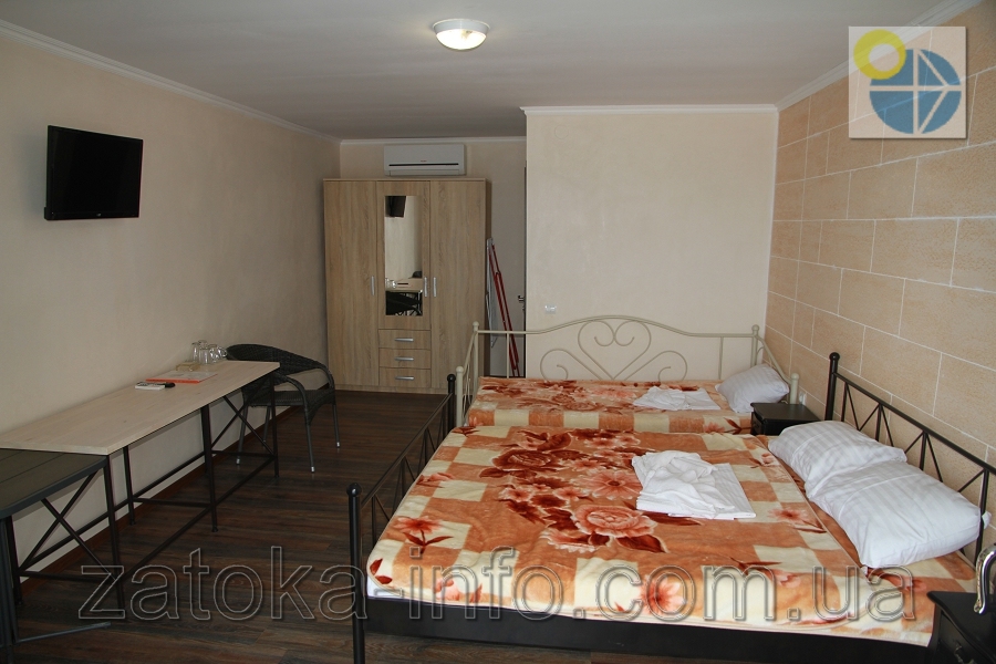 Апартаменты 2-комнатные – (2-комнатный, 4-местный номер, общая площадь – 38 м. кв.) - 2 спальни (2 двуспальные кровати, 2 кондиционера, 2 кабельное ТВ), кухня для самостоятельного приготовления (электрическая плита, холодильник, микроволновая печь, электрочайник, набор посуды), санузел (душевая кабина, унитаз, умывальник, фен, количество полотенец – 2 на человека). Терраса. Дуплекс – (2-комнатный, 2-х уровневый, 4-местный номер, общая площадь - 30) - 2 спальни (двуспальная кровать, 2 односпальные кровати, 2 кондиционера, кабельное ТВ, холодильник, электрочайник), санузел (душевая кабина, унитаз, умывальник, фен, количество полотенец – 2 на человека). Балкон. Семейный 2-комнатный – (2-комнатный, 4-местный номер, общая площадь - 28) - 2 спальни (двуспальная кровать, 2 односпальные кровати, кондиционер, кабельное ТВ, холодильник, электрочайник), санузел (душевая кабина, унитаз, умывальник, фен, количество полотенец – 2 на человека). Терраса. Стандарт 2-местный Море – (1-комнатный, 2-местный номер, общая площадь – 20 м.кв.) - двуспальная кровать, кабельное ТВ, кондиционер, холодильник, электрочайник, санузел (душевая кабина, унитаз, умывальник, количество полотенец – 2 на человека). Балкон или терасса с видом на море. Стандарт 3-местный Море – (1-комнатный, 3-местный номер, общая площадь – 25 м.кв.) - двуспальная кровать, односпальная кровать, кабельное ТВ, кондиционер, холодильник, электрочайник, санузел (душевая кабина, унитаз, умывальник, количество полотенец – 2 на человека). Балкон или терасса с видом на море. Стандарт 2-местный Боковой – (1-комнатный, 2-местный номер, общая площадь – 20 м.кв.) - двуспальная кровать, кабельное ТВ, кондиционер, холодильник, электрочайник, санузел (душевая кабина, унитаз, умывальник, количество полотенец – 2 на человека). Балкон или терасса. Стандарт 3-местный Боковой – (1-комнатный, 2-местный номер, общая площадь – 25 м.кв.) - двуспальная кровать, односпальная кровать, кабельное ТВ, кондиционер, холодильник, электрочайник, санузел (душевая кабина, унитаз, умывальник, количество полотенец – 2 на человека). Балкон или терраса. Стандарт 2-местный улучшенный – (1-комнатный, 2-местный номер, общая площадь – 18 м.кв.) - двуспальная кровать, кабельное ТВ, кондиционер, холодильник, электрочайник, санузел (душевая кабина, унитаз, умывальник, количество полотенец – 2 на человека). Терраса. Стандарт 2-местный Бунгало – (1-комнатный, 2-местный номер, общая площадь – 20 м.кв.) - двуспальная кровать, кабельное ТВ, кондиционер, холодильник, электрочайник, санузел (душевая кабина, унитаз, умывальник, количество полотенец – 2 на человека). Терраса с боковым видом на море. Стандарт 2-местный – (1-комнатный, 2-местный номер, общая площадь – 18 м.кв.) - 2 односпальные кровати, кабельное ТВ, кондиционер, холодильник, электрочайник, санузел (душевая кабина, унитаз, умывальник, количество полотенец – 2 на человека). Терасса. Мансардный 2-местный – (1-комнатный, 2-местный номер, общая площадь: 16-20 м.кв.) - двуспальная кровать, кабельное ТВ, кондиционер, холодильник, электрочайник, санузел (душевая кабина, унитаз, умывальник, количество полотенец – 2 на человека). Терраса. Эконом 2-местный – (1-комнатный, 2-местный номер, общая площадь – 14 м.кв.) - 2 односпальные кровати, кабельное ТВ, кондиционер, холодильник, общий санузел на 3 номера (душ, унитаз, умывальник, количество полотенец – 1 на человека). Общая терр